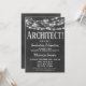 A fun black and white chalkboard architect graduation party invitation with glowing lights at the top.