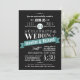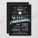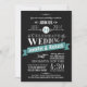 Festive and whimsical eye-catching black and white wedding invitations with a teal blue banner. Elegant vintage retro-style chalk typography with a semi-formal art-deco motif. Perfect for trendy modern weddings with a sophisticated touch of romantic chrm for the traditional bride and groom. Please contact us for help with customisation if you need additional room for your wedding details.