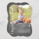 This Baptism Invitation photo card features an elegant layout, chalkboard background, and your child's name in a pretty script font.