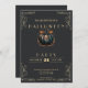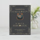 The back of the invitation continues the theme with its sleek black background, ensuring a cohesive and stylish look. Whether you're hosting a sophisticated costume ball or a whimsical pumpkin carving party, this invitation is sure to set the perfect tone for your Halloween celebration. Invite your guests to join you for a night of fun and festivities with this stunning Halloween party invitation.