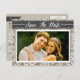 Chalkboard Burlap & Lace Photo Save the Date Cards - feature a burlap and lace background with a chalkboard printed band with Save the Date on top. Save the Date is in an elegant script for added rustic or country decor. Change the demo couple to a picture of your choice.