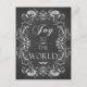 Vintage chalkboard Christmas card "Joy to the World" with elegant, festive border design and tiny, cute deers on the backside.