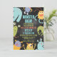 Brightly colored monsters themed 1st birthday invitation with a scanned chalkboard background and various colorful monster and dots. This monster bash 1st birthday invitation is ideal for a monster themed first birthday party.