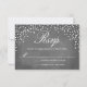 RSVP card featuring confetti dots and a faux chalkboard background.