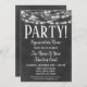 A fun black and white chalkboard corporate party invitation with glowing lights at the top.