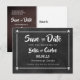 Personalise with your names and details on this cool chalkboard save the date card featuring cute cupids.
