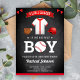 Amaze your guests with this cool baseball theme baby shower invite featuring a cute little baseball jersey and matching sports elements with modern typography against a chalkboard background. Simply add your event details on this easy-to-use template to make it a one-of-a-kind invitation. Flip the card over to reveal a red and white stripes pattern on the back of the card.