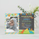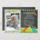 Chalkboard Dinosaur Birthday Invitation with custom photo. Dino Birthday Party Invite. Boy Birthday. Kids Birthday.1st First Birthday. 1st 2nd 3rd 4th 5th 6th 7th 8th 9th 10th 11th 12th 13th 14th 15th, Any Age. Chalkboard Orange Green Blue Yellow Stripes Background. Printable Digital. For further customisation, please click the "Customise it" button and use our design tool to modify this template.