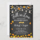 Rustic Chalkboard Fall In love Engagement Party Invitation with black chalkboard pattern and string fairy lights. Features Mason Jars and fall autumn leaves. Perfect for a rustic style party.