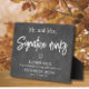 The Signature Drinks Chalkboard Wedding Sign Tabletop Plaque features a stylish imitation chalkboard design, perfect for adding a rustic, yet elegant touch to your wedding reception. The plaque showcases a list of your signature drinks in beautiful, handwritten-style fonts, evoking the charm of a real chalkboard without the mess. The black background mimics chalkboard texture, while white and coloured "chalk" lettering makes the drinks menu pop.