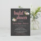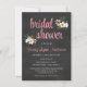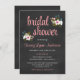 Modern Chalkboard Wedding Invitations - Floral Garden Bouquet Bridal Shower. Pink and white abstract flowers with blue and green accents. Fun and feminine simple typography in coral peach script calligraphy on slate grey blackboard. Just add the name of the Bride-to-Be, the date, time and details, and personalise the bridal registry information. Perfect for rural or rustic country farm wedding themes. Click Customise It to change the size, style, or layout and create your own affordable wedding shower invitations. Some elements contained in this design are commercially licensed from CreativeMarket, copyrighted by Mia Charro, and may not be used or reproduced without permission. Botanical Wedding Theme © 2013