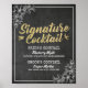 Modern Signature Cocktail Drink Menu Wedding Decor Poster Templates - Elegant Gold Script and White Floral Frame on Grunge Black Chalkboard Background.