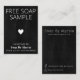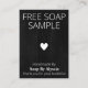 Nothing says "Thank you, I appreciate your business." more than a little freebie inside your bag of purchased goods. This display card is an excellent promotional tool as your customer is likely to pass this little sample onto a friend, simply cut the vertical lines in the middle of the card with a blade and thread a small soap sample through. The design has a chalkboard background.