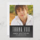 CHALKBOARD GRAD | GRADUATION THANK YOU CARD WITH GRAD PHOTO WITH WHITE RETRO TYPOGRAPHY AND BLACK CHALKBOARD BACKGROUND FOR YOUR SON. Elke Clarke© For MonogramGallery at Zazzle. A fun, bold, modern design for a teen boy graduating high school or college grad. Other colours and styles available in our store.