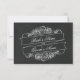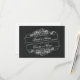 A wedding rsvp featuring a chalkboard inspired background and a rose / banner design. Personalise with the bride and groom's names on front and with the date on back.