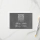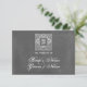 A wedding rsvp featuring a chalkboard inspired design. Personalise with the bride and groom's names on front and with the date on back.