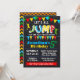 Jump birthday bash invitation, primary colours colour scheme suitable for any age. Add your own wording into the template, to more customisation (font colour, font style, background), click on personalise, scroll down and click on link "click to customise further".