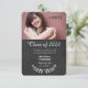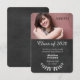 Announce your graduation with this trendy and popular chalkboard announcement design! Your photograph (black and white or colour) is at the top, with your custom text and a pretty chalkboard laurel leaf emblem on the bottom. The back of the card is matching chalkboard grey black.