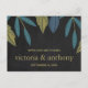 The design features a stylish chalkboard background with chic hand drawn foliage leaves in shades of blue and green.