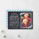 Affordable custom printed holiday photo cards with simple templates for customisation. This fun design features cute hand-lettered style typography on a faux chalkboard background with aqua striped washi tape around your photo. The text reads "Hope the holidays bring you lots of reasons to smile". Personalise it with your photos, family name, the year or other custom text. Reverse side has space for additional photos or text. Use the design tools to edit the text, add more photos and create a unique one of a kind holiday photo card design.
