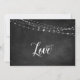 Over a background depicting a textured black chalkboard surface, I've placed graphics depicting light strings draped along the top. The word "Postponed" on the front and "Love" on the back were created using a modern, swirling script font. Use the template fields to add your personal details and make this distinctive design your own. Please reach out with any special requests or for customising assistance. // 73 //