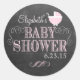 Chalkboard Look and Pink Baby Carriage Baby Shower Classic Round Sticker