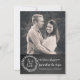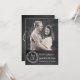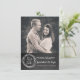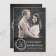 Fun rustic chalkboard look wedding save the date announcement, with custom photo at the top of the card, and a charcoal grey blackboard look, on the bottom. Graphics of a wreath with text reading Save the Date, decorates the bottom. Custom white text is ready to personalise with your photo and information. Lovely way to announce your up coming wedding.