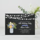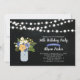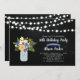 Celebrate your special day with this stylish birthday invitation. This design features string lights, mason jar & flower bouquet with a chalkboard background.