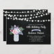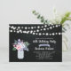 Celebrate your special day with this stylish birthday invitation. This design features string lights, mason jar & flower bouquet with a chalkboard background.