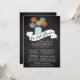 Modern Chalkboard Mason Jar Bridal Shower invitation featuring a contemporary ribbon banner with a fancy script and colourful fun orange & blue mum flowers. A bit of vintage charm with a modern flair bridal shower invite with typographic text. Perfect wedding shower invitation for a garden bridal shower, spring bridal shower, or summer bridal shower.