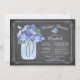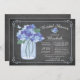 Modern Mason Jar Bridal Shower Invitation featuring a country mason jar filled with blue & purple flowers set on a chic chalkboard background with a pretty floral & butterfly accent and a whimsical frame. Flip our bridal shower invite over to view a matching back for an extra special touch. Perfect for a rustic country chic bridal shower for fall, winter, spring or fall.