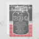 Unique I DO BBQ card design featuring a chalkboard background, red gingham, white lace, string lights and a mason jar for the text. Use Customise tool to add your info. For more, please, visit my “I DO BBQ Chalkboard/Barn/Mason Jar and Gingham” Collection.
