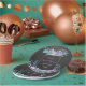 An explosion of purple and aqua tonal flowers spills out of a chalkboard outline of a mason jar on these bridal shower plates that combines two trends for a down-to-earth but gorgeous celebration. Text prints within the mason jar punctuated by organic accents. Available in alternate colours with matching products.