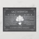 Popular chalkboard style wedding or shower guest information insert card is outlined by a lovely swirling scroll border and given a chalk effect. Original illustration of a rustic mason jar holding an hydrangea flower bouquet is accented with a white heart that holds the couple's initials on the back. Room for all the important information on the front, such as directions to the event or reception, local hotel accommodations, or weekend celebration itinerary. Whimsical typography gives this card a fun and casual vibe. Coordinating items also available.