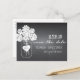 A pretty mason jar full of white hydrangeas decorates this lovely wedding Save the Date chalkboard postcard.
