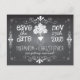 Curly scribbles and doodles galore decorates this fun and whimsical Save the Date chalkboard postcard.