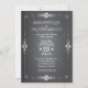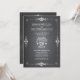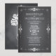 Popular chalkboard style wedding invitation is outlined by swirl scroll border and given a chalk effect. On the back, an original illustration of a trendy mason jar holding white hydrangea flowers and a heart personalised with the bride and groom's initials. Whimsical typography gives the invitation a casually elegant look. Coordinating items also available.