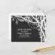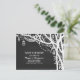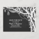 creative chalkboard save the date postcard with mason jars, twinkle lights, flowers, leaves and trees. Perfect save the date for outdoor wedding with trees and hanging mason jar string lights.