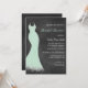 This romantic bridal shower invitation is accented with a beautiful mint green wedding dress on an illustrated chalkboard background.