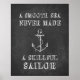 "A smooth sea never made a skilful sailor" quote, inspirational, motivational chalkboard poster with anchor sign. Black and white.