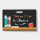 A simple nurse hall pass with a faux chalkboard , a few books and a small red apple . It can easily be personalised with the pass title , the teacher's name and room number (or school name) . Visit our store for hall passes with a different theme .
