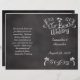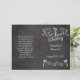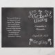 Use this foldable program (not pre-folded) to create a printed programme of your wedding day events. High quality printing. Celebrate nuptials on the shore with this breezy palm tree with a sketched on chalkboard blackboard with white chalk look. Great for a rustic vintage feel at a beach wedding. Design Copyright © CustomInvitesOnline.com