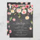 Chalkboard Pink Peonies Floral Spanish Baptism Invitation