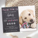 Puppy Pawty ! Host your puppy or dogs birthday with this simple rustic slate chalkboard and paw print design dog birthday party invitation card.