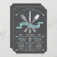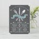 This Rehearsal Dinner Invitation features a formal fork, knife, and spoon with banner. Chalkboard background gives this dinner party invitation a rustic casual feel but still elegant. Customise with your own text. Original Illustration by pj_design. Contact me if you need help.
