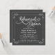 Rustic chalkboard pre-wedding rehearsal dinner party invitations with fancy lasso style calligraphy and simple chalk typography and stylish swirly curly scrolls on slate grey blackboard. Add the names and wedding info in this easy to use template. Retro style chalkboard invitations are perfect for trendy modern weddings with a fun touch of sophisticated western/southern style charm for the traditional bride and groom at affordable prices for brides on a budget.