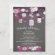 Modern & trendy chalkboard mason jar baby shower invitation featuring a tree branch with pretty shades of purple & pink floral flowers and popular rustic hanging mason jars with "it's a girl" on one. Perfect contemporary mason jar baby shower invitation for a baby girl shower, boy baby shower or neutral baby shower. Visit our shop to view our beautiful selection of mason jar invitations.