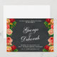 Make a bold and beautiful statement with this 7x5 landscape chalkboard wedding invitation. Perfect for a 2026 rustic chic or "Dark Romance" ceremony, this elegant design features a dark, textured chalkboard background framed by large, vibrant vintage roses. The striking floral border on the left and right sides creates a sophisticated, artistic frame for your wedding details.
