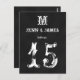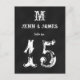 Fun Black White Monogram Rustic Rustic Wedding Table Number Cards. Elke Clarke © These wedding Table Number postcards are shown with a black chalkboard effect printed background, white monogram initial and bride and groom names in a white vintage font style. Customise with bride and groom names, monogram initial, and table number using Zazzle's easy to use menu prompts. This simple yet fun monogram initial design works for all letters of the alphabet and is fully customisable to suit any colour combination. Order one card for each different table number. You change it to each number and then add to your cart.