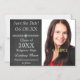 Chalkboard images are popular, and this one is simple, but elegant. Your photograph (black and white or colour) is on the right side, with your custom text and a pretty chalkboard emblem on the left. Graduation Save the Date magnets and postcards are popular and practical!
